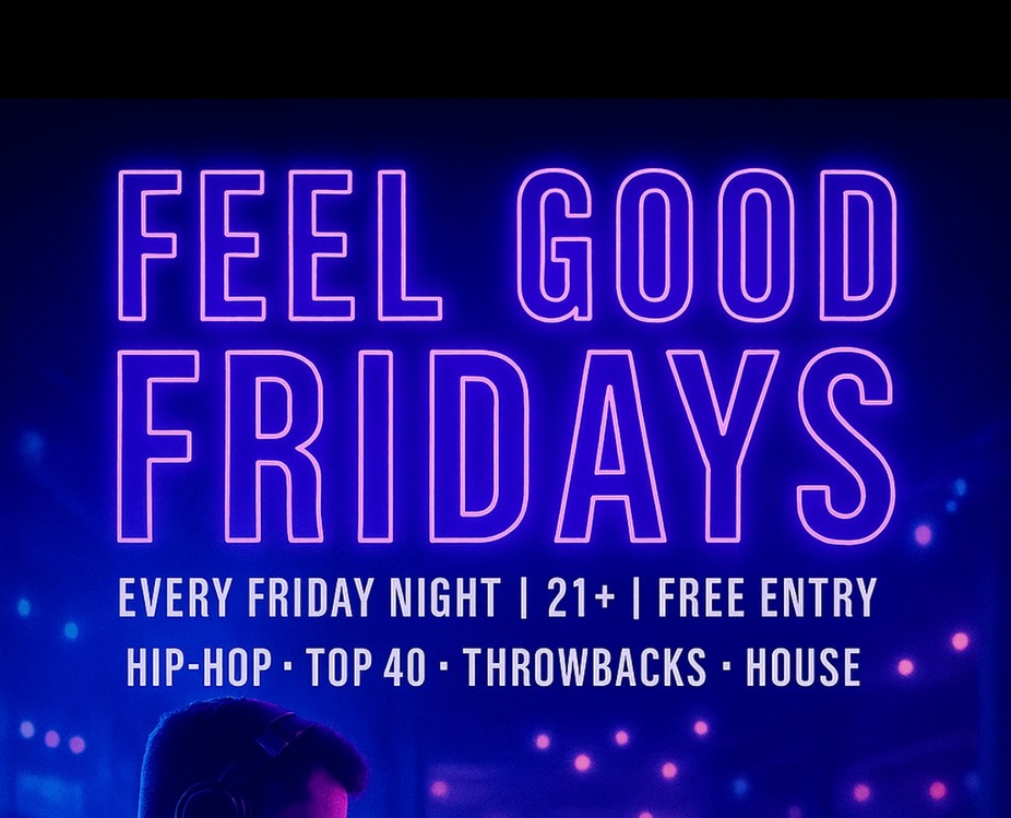 Your favorite local DJs spinning an open format of Hip Hop, Top 40, House, & Throwbacks. Reading the room and creating the feel good vibe a Friday night deserves.